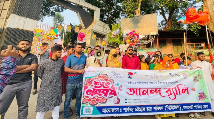 বাংলা নববর্ষ-১৪৩২ উদযাপনে পার্বত্য চট্টগ্রাম ছাত্র পরিষদ (পিসিসিপি) রাঙামাটি পার্বত্য জেলা শাখার উদ্যােগে বৈশাখী শোভাযাত্রা অনুষ্ঠিত হয়েছে। শোভাযাত্রাটি (১৪ এপ্রিল) সোমবার বিকেলে পিসিসিপি’র জেলা কার্যালয় কাঠালতলী এলাকা হতে শুরু হয়ে