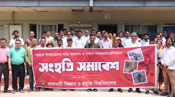 ফিলিস্তিনের গাজায় ইসরায়েলের বর্বর আগ্রাসন ও নৃশংস গণহত্যার প্রতিবাদে বিশ্বব্যাপী “No Work, No School” কর্মসূচির সাথে সংহতি প্রকাশ করে রাঙ্গামাটি বিজ্ঞান ও প্রযুক্তি বিশ্ববিদ্যালয়ে দুই ঘণ্টা কর্মবিরতি এবং বিশ্ববিদ্যালয়ের প্রশাসনিক
