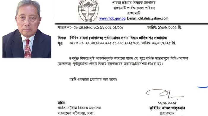 রাঙ্গামাটিতে বাঙালিদের জমি বেচাকেনা বন্ধ করে দিলেন জেলা পরিষদ চেয়ারম্যান। গত ২৯ জুলাই রাঙ্গামাটি পার্বত্য জেলা পরিষদের চেয়ারম্যান কাজল তালুকদার পার্বত্য মন্ত্রণালয়ে এক চিঠি লিখে জমি বেচাকেনার ব্যাপারে নির্দেশনা চেয়েছিলেন